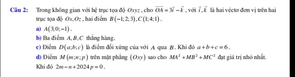 `=>` `(MA^2+MB^2+MC^2)_("min")<=>M` là hình chiếu của `I` lên `(Oxy)`