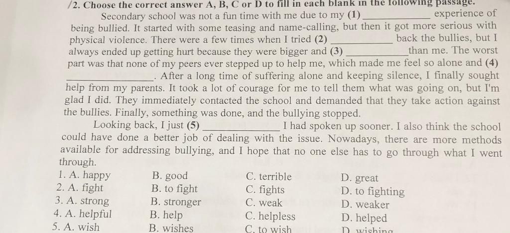 2. There were a few times when I tried (2) ________ back the bullies.