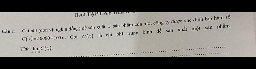 trong đó C(x) tính bằng nghìn đồng. Gọi C'(x) là chi phí trung bình để sản xuất một sản phẩm. Tính: