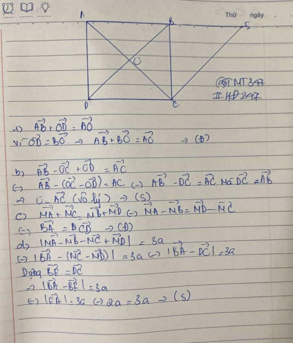 b) vectơ AB - vecto OC + vecto OD = vecto AC