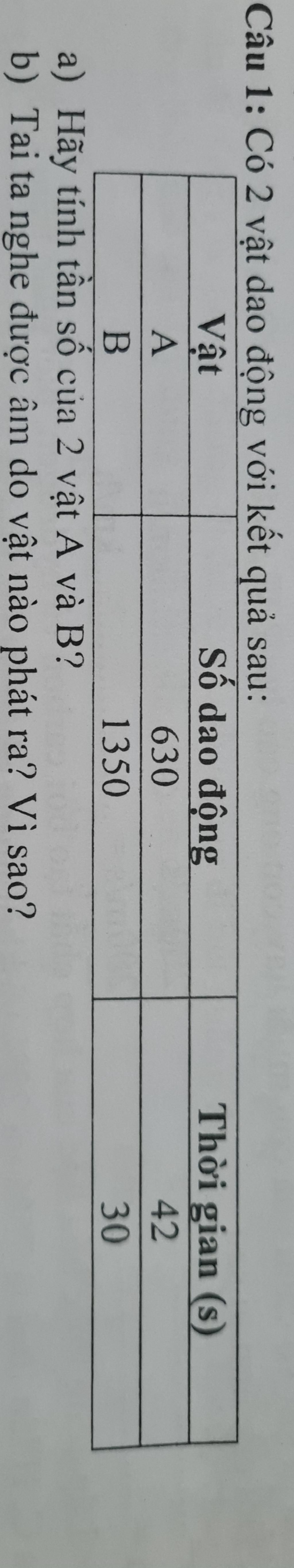 `b)` Tai nghe được âm dó vật B phát ra vì tai người nghe được âm thanh trong tần số từ $\rm 20Hz-20000Hz$