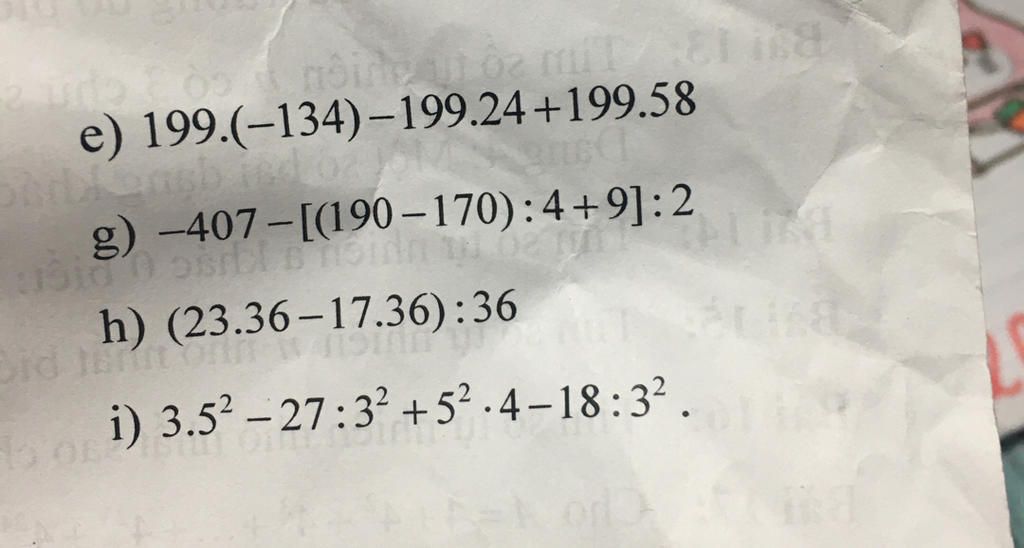 e.$199\cdot (-134)-199\cdot 24+199\cdot 58$