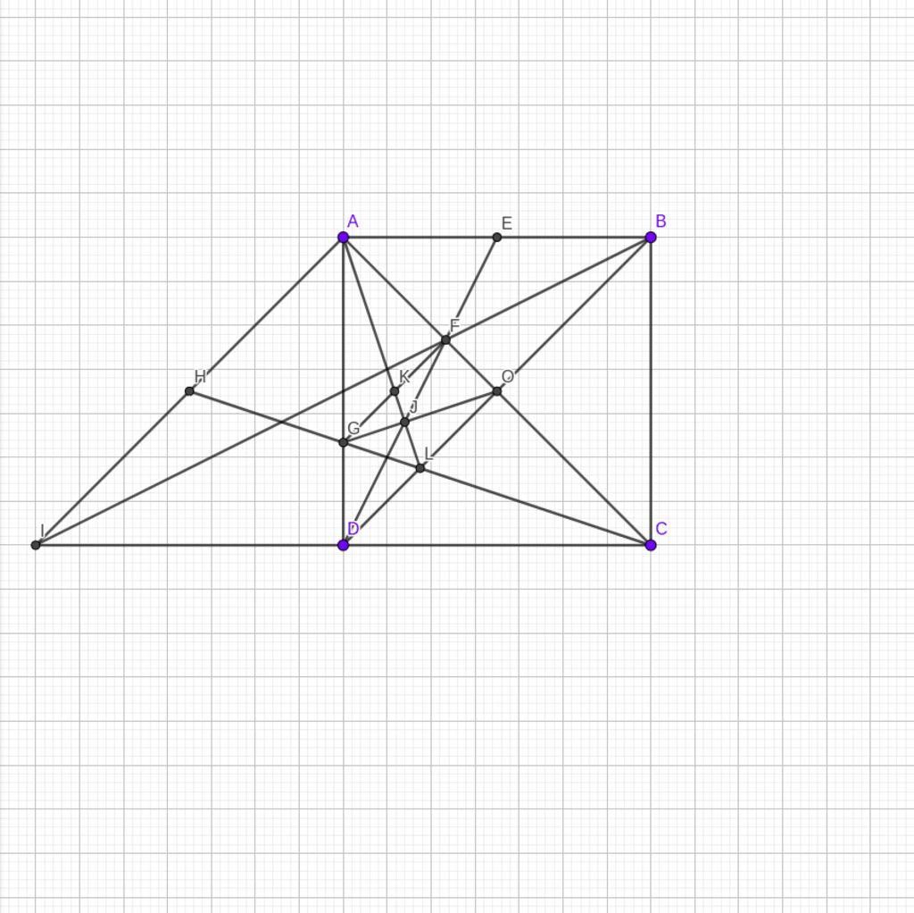Cho hình vuông ABCD có tâm O, gọi E là trung điểm của AB.DE cắt AC tại F-BF cất CD tại