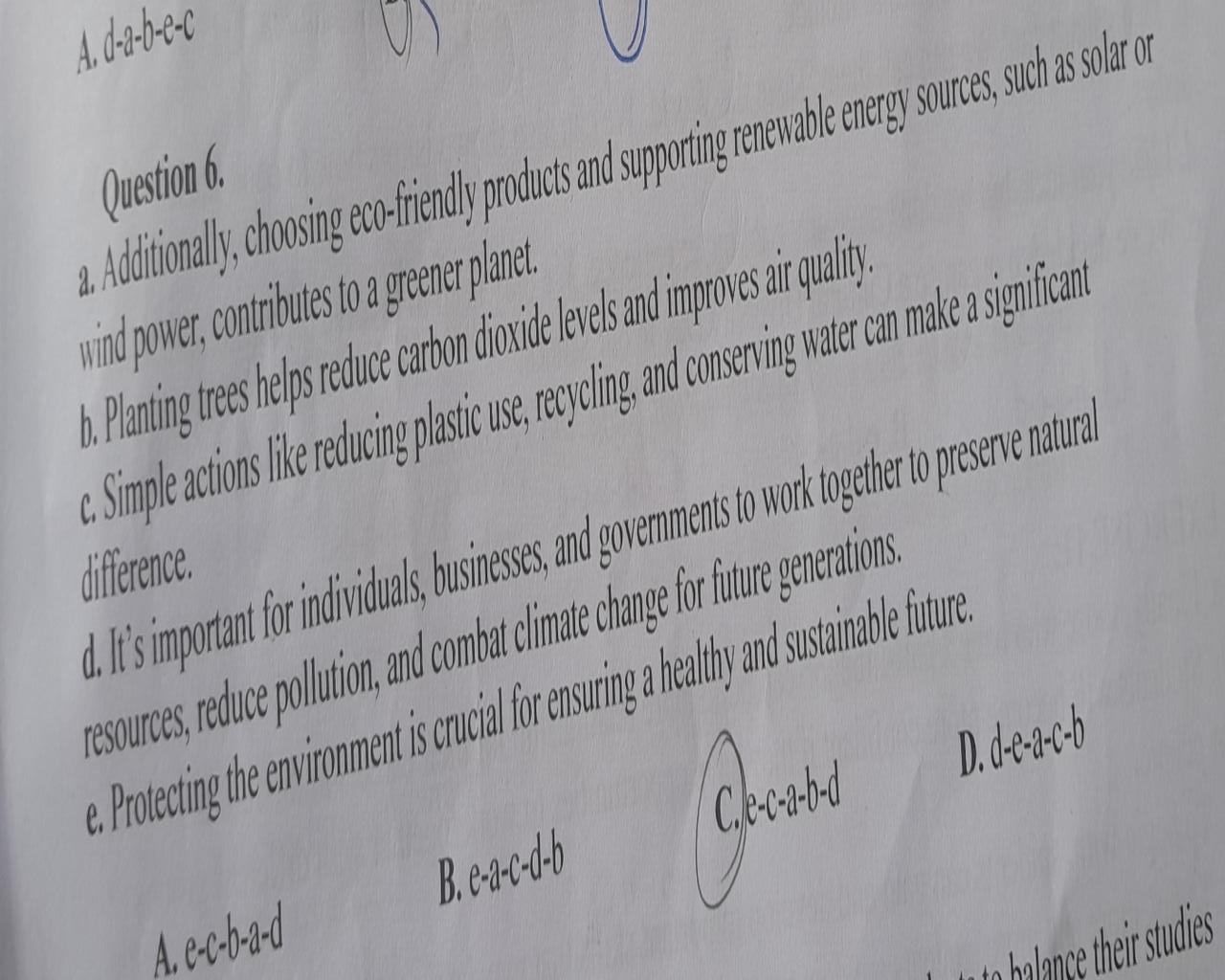 `C.` Những hành động đơn giản như giảm sử dụng nhựa, tái chế và tiết kiệm nước có thể tạo nên sự khác biệt đáng kể.