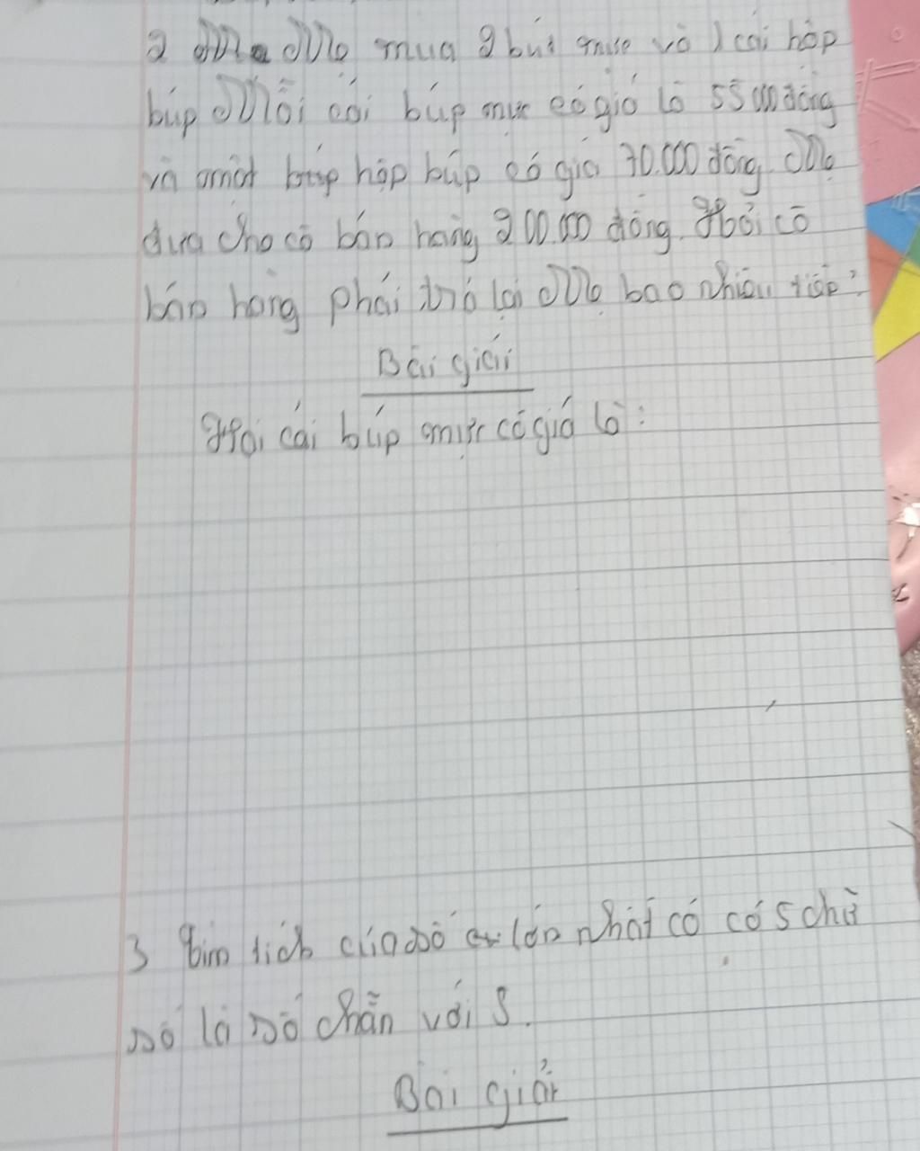 mẹ mua 2 cái bút và 1 hộp bút hết số đồng là
