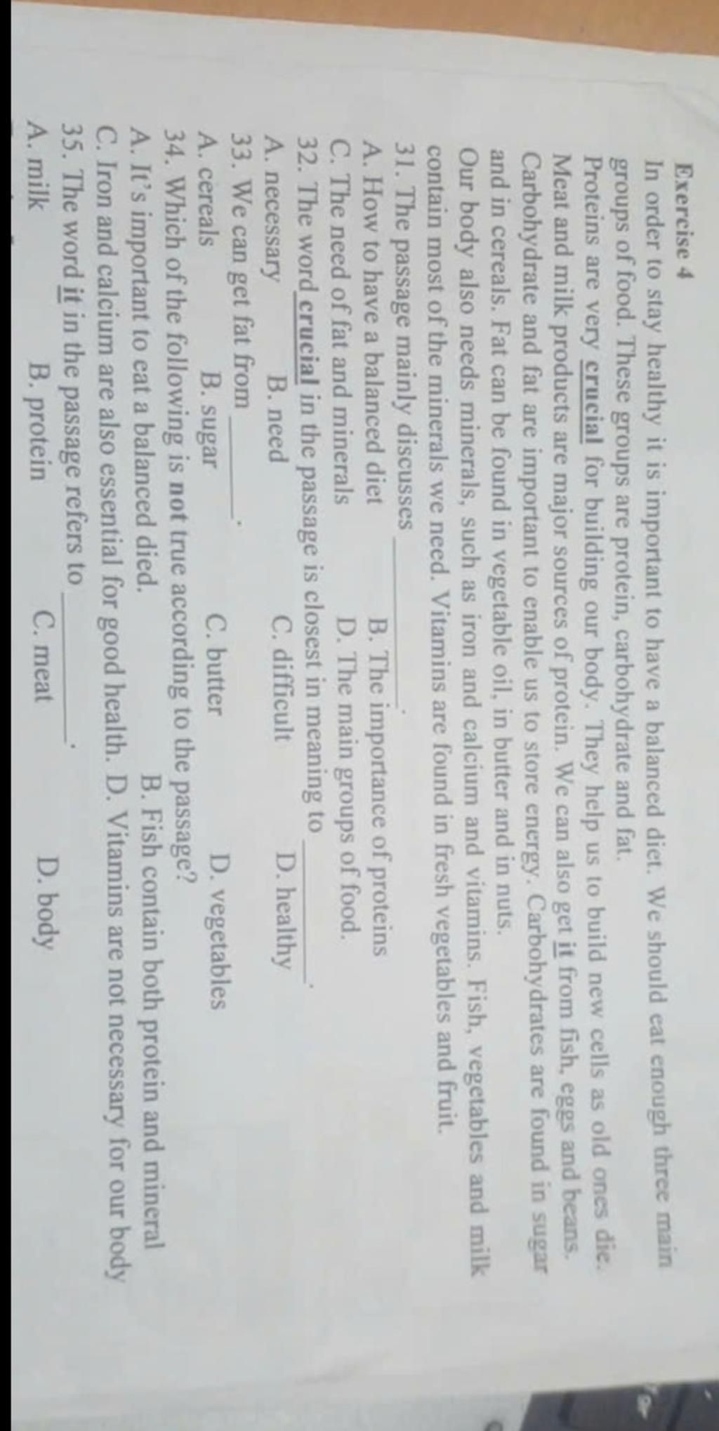 Câu 31 mình nghĩ là D vì bài đọc có nói làm thế nào để có bữa ăn cân bằng đâu. Câu đầu là bẫy