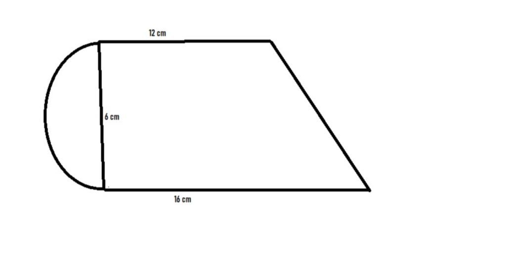 Hình vẽ ở dưới được tạo bởi nửa hình tròn và hình thang vuông ( có kích thước ghi ở hình vẽ). hãy tính diện tích hình đó.