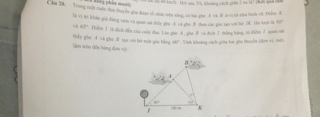 Câu 20. Trong một cuộc đua thuyền ghe được tổ chức trên sông, có hai ghe 4 và B ở vị trí như hình vẽ. Điểm A.