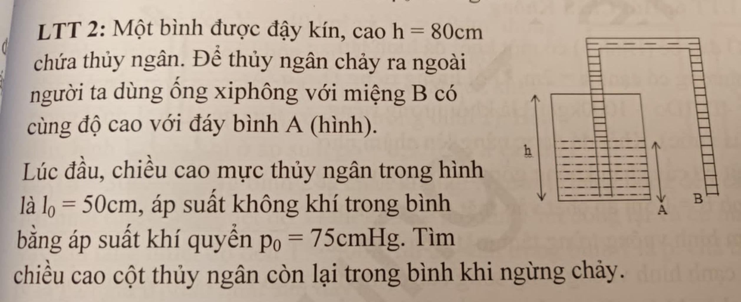 LTT 2: Một bình được đậy kín, cao h = 80cm