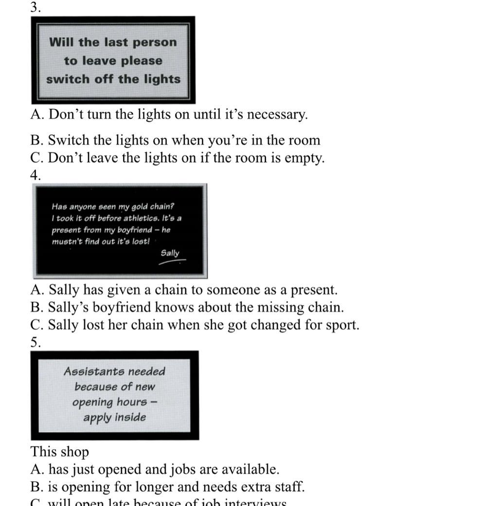 => C. Sally đã làm mất sợi dây chuyền của mình khi cô ấy thay đồ cho hoạt động thể thao.