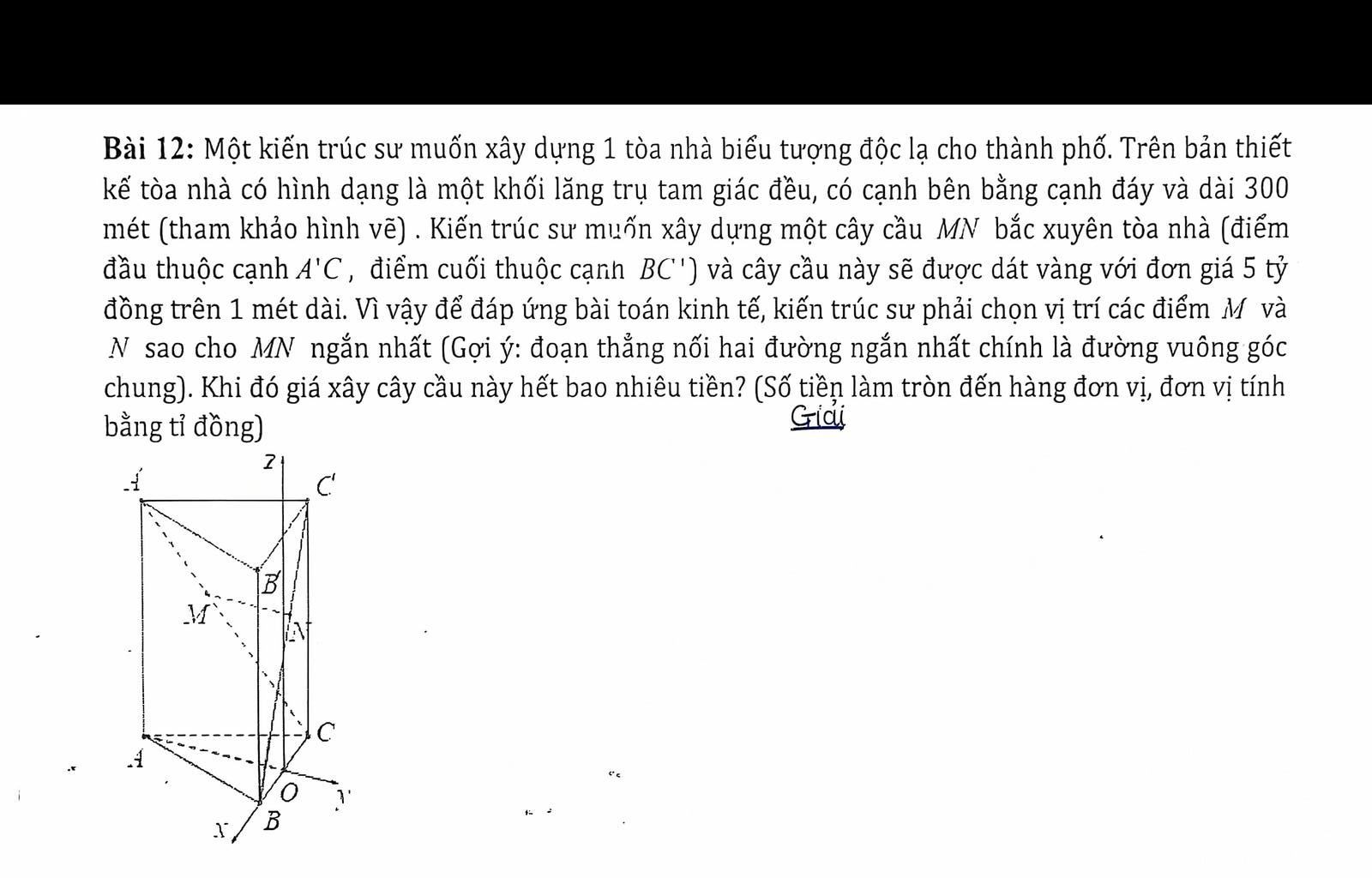 $MN=\dfrac{|[\vec{A'C}, \vec{BC'}]\cdot \vec{A'C'}|}{|[\vec{A'C}, \vec{BC'}]|}\approx 134.16$