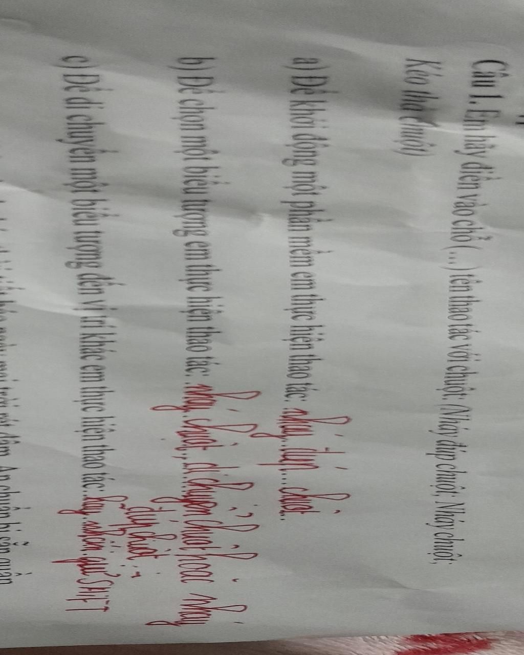 Câu c. Để di chuyển 1 biểu tượng đến vị trí khác em thực hiện thao tác là kéo thả chuột ( cái mà bạn ghi nhấn giữ phím Shift là cái đó là để viết in á bạn)