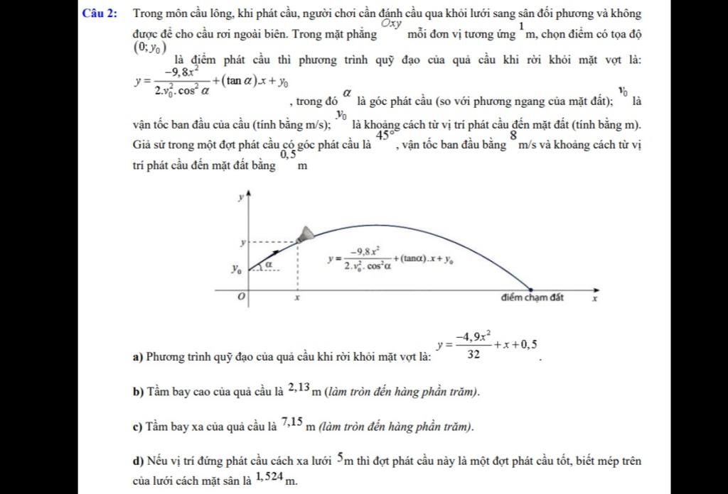 là điểm phát cầu thì phương trình quỹ đạo của quả cầu khi rời khỏi mặ ...