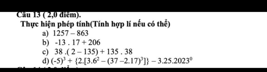 `d,` `(-5)^3 + {2 . [3 . 6^2 - (37 - 2 . 17)^3]} - 3 . 25 . 2023^0`