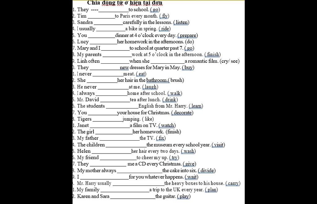 `-` N(số ít) : he/she/it/... + does/doesn't/V(s/es)