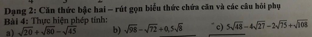 `c) 5\sqrt{48} -4\sqrt{27} - 2\sqrt{75} + \sqrt{108}`