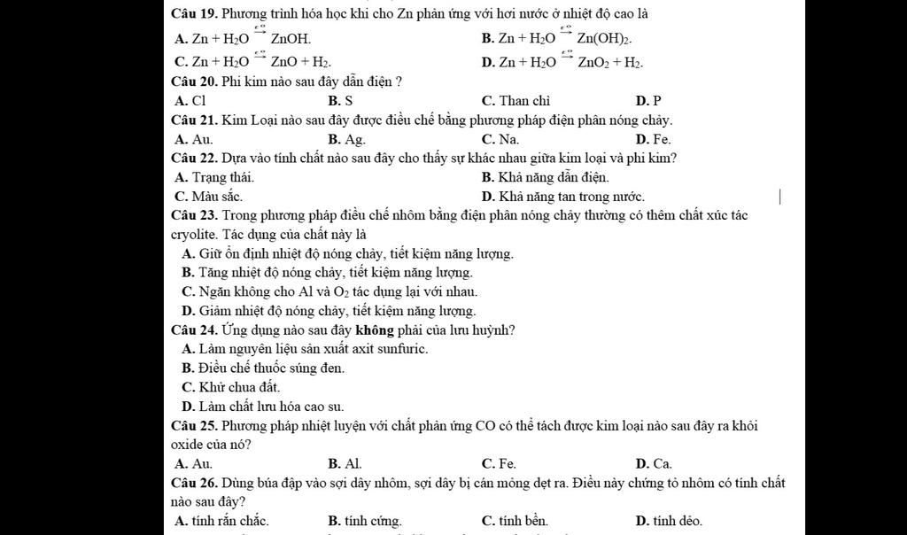 `@PTHH:Zn+H_2Ooverset{t^0}->ZnO+H_2uparrow`