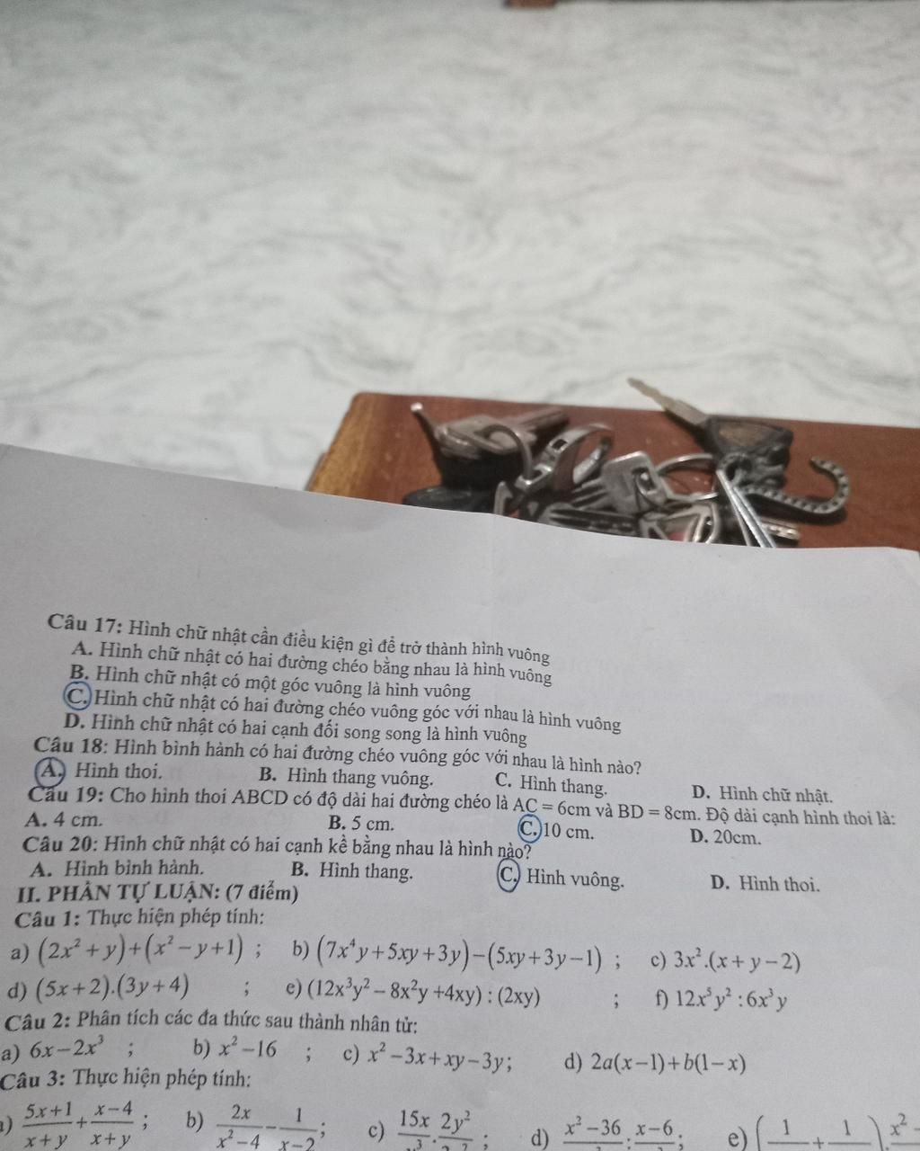 Câu 17: Hình chữ nhật cần điều kiện gì để trở thành hình vuông