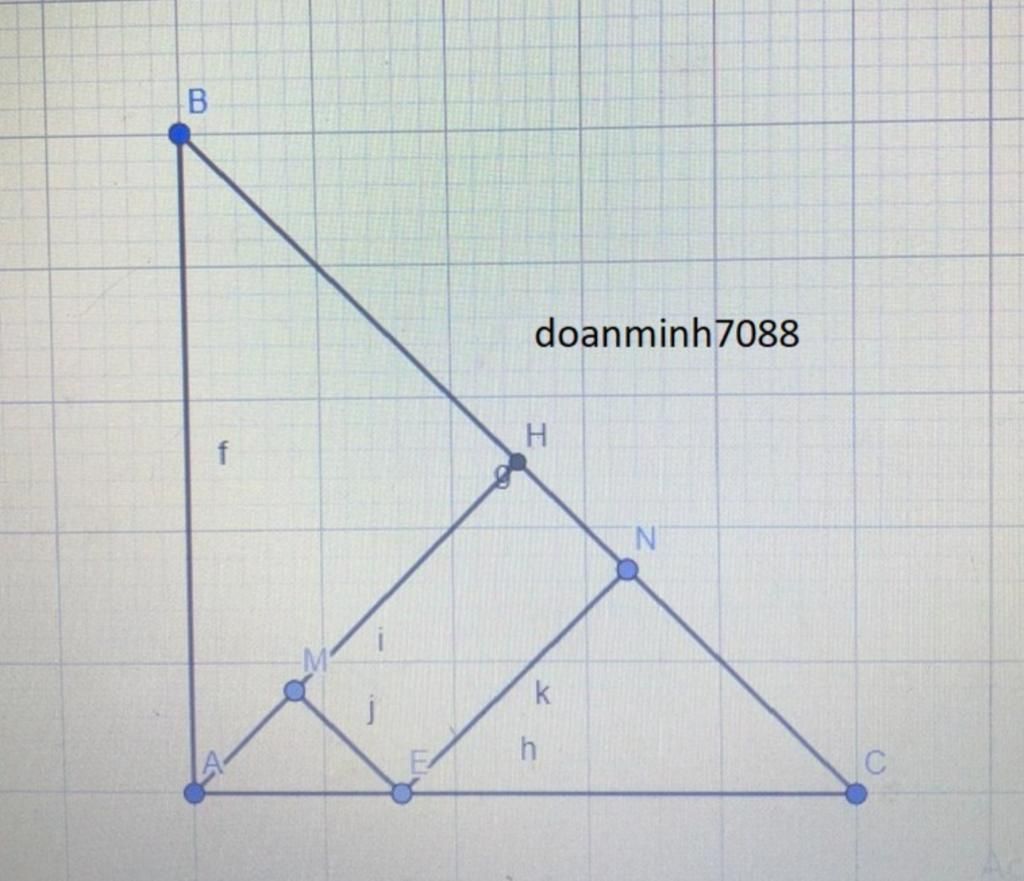 Cho tam giác ABC vuông cân tại A, đường cao AH (H thuộc BC). trên cạnh AC lấy điểm E (E khác A và C); từ E kẻ EM, EN lần lượt vuông góc với AH và BC (M thuộc AH, N thuộc BC)