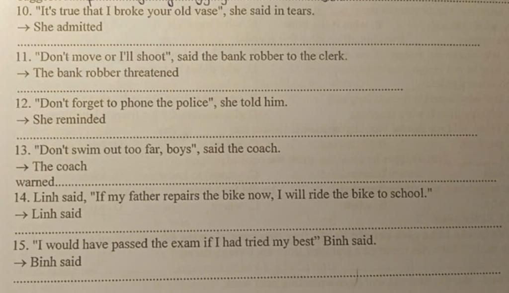 `15,` Binh said he would have passed the exam if he had tried his best.