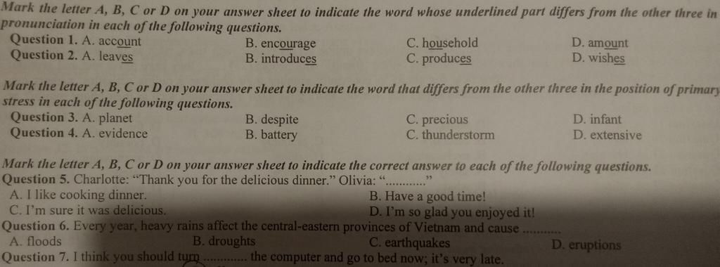 `1,` A ( âm /ʌ/. Còn lại âm /aʊ/ )