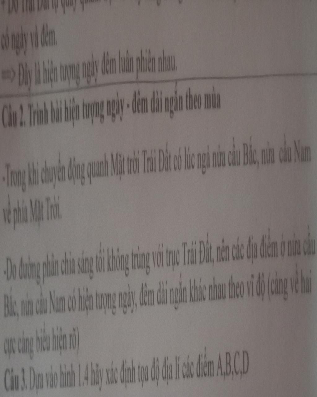 `-` Hiện tượng ngày ,đêm dài ngắn theo mùa là do :
