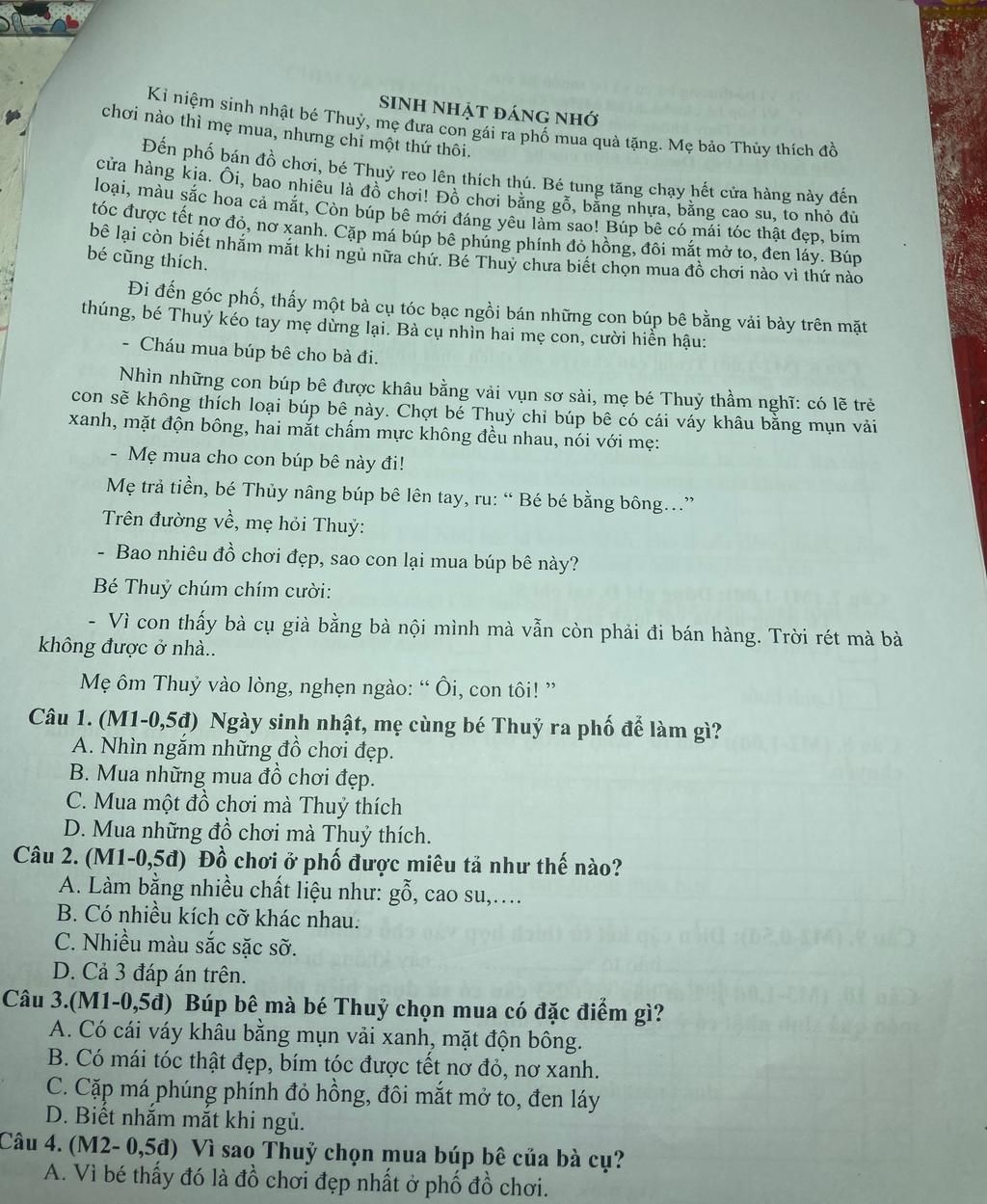 ` => D//c: ` Chợt bé Thủy chỉ búp bê có cái váy khâu bằng mụn vải xanh, mặt độn bông, hai con mắt chấm mực không đều nhau,...