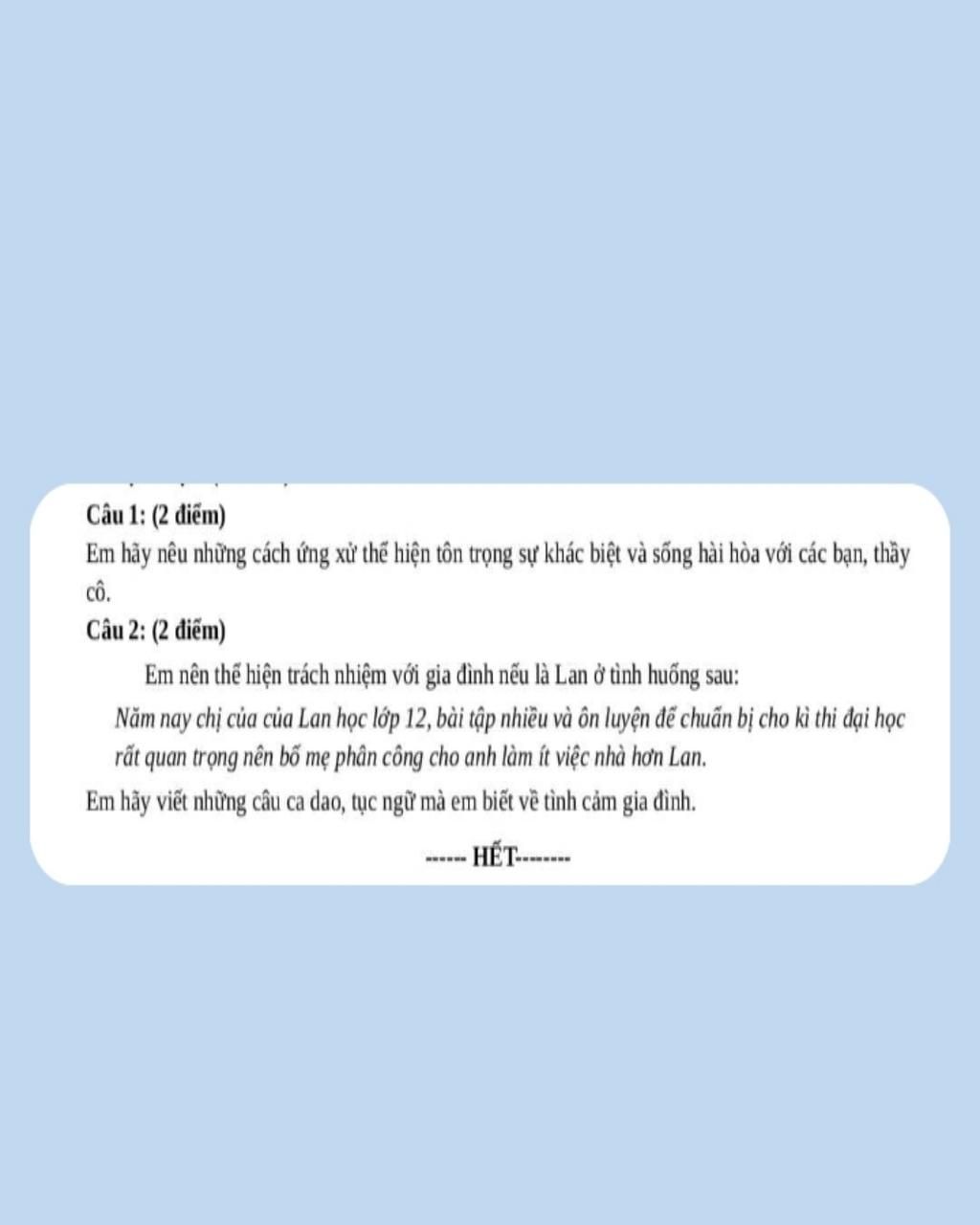 Câu 2: Em nên thể hiện trách nhiệm với gia đình nếu là Lan ở tình huống sau.