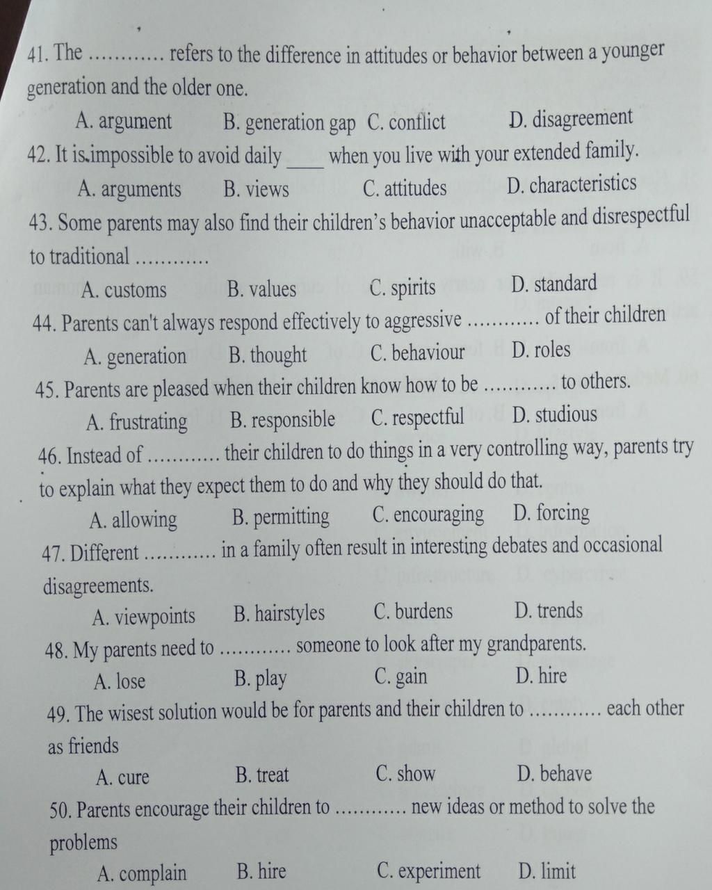 B. generation gap C. conflict