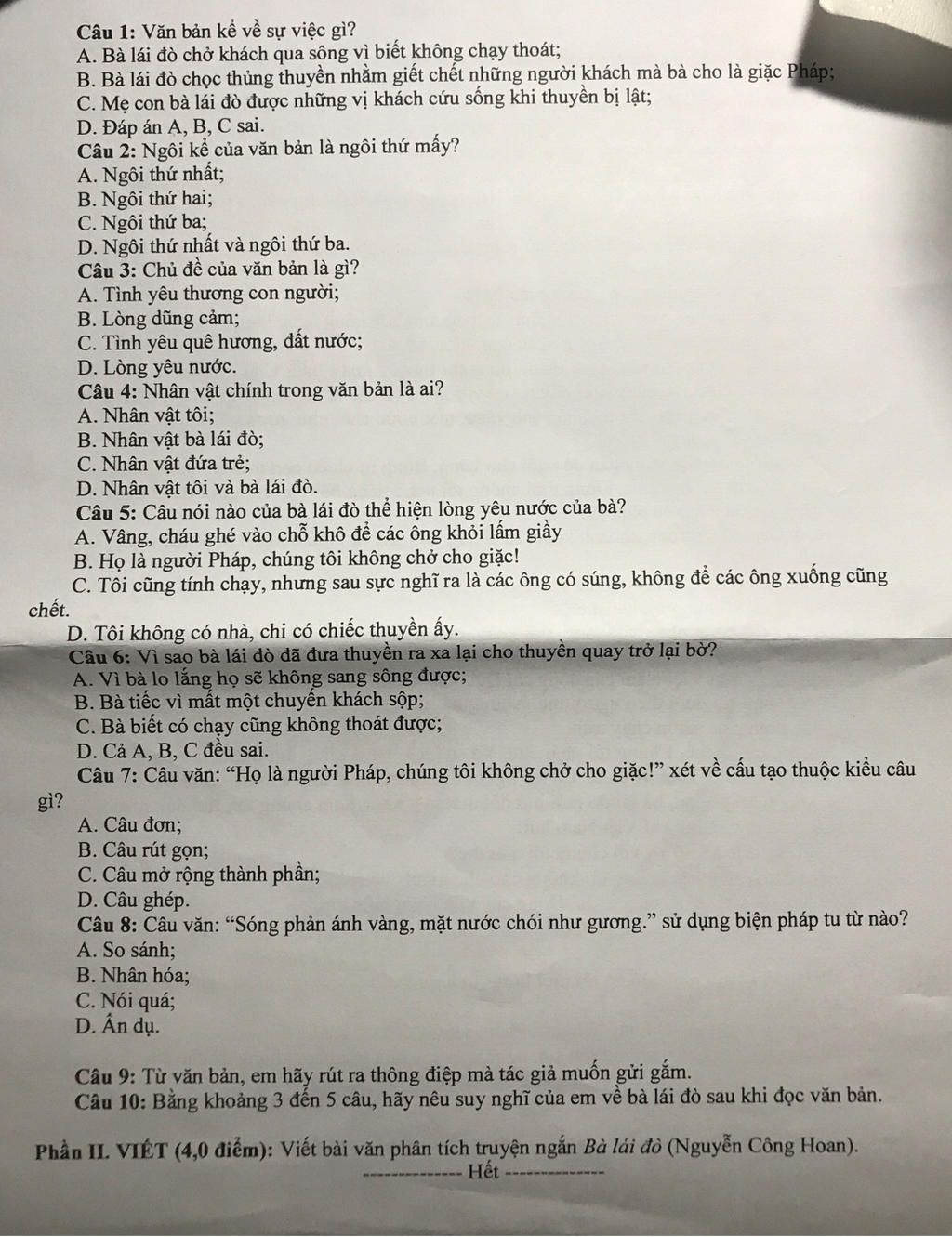 B. Bà lái đò chọc thủng thuyền nhằm giết chết những người khách mà bà cho là giặc Pháp;