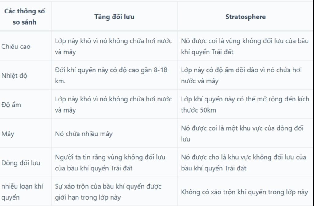 Tang doi luu cao tu 8-16 m binh luu tu 50 m tro len. So sanh binh luu la tang co nhiet do tang doi luu nhiet do giam