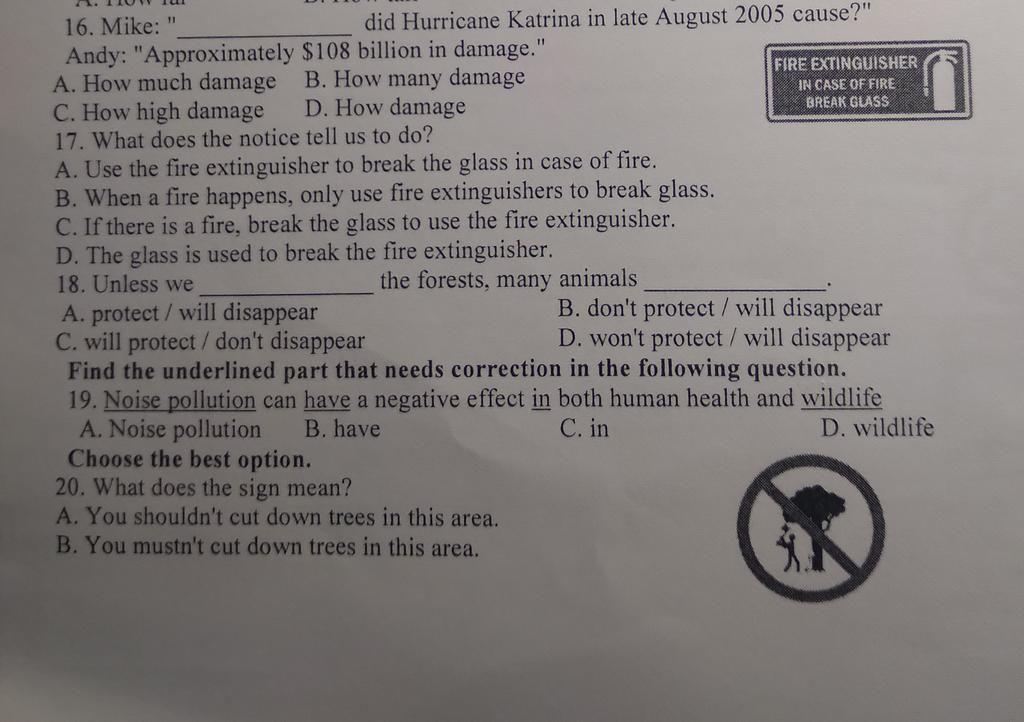 18. Unless we __________ the forests, many animals __________.