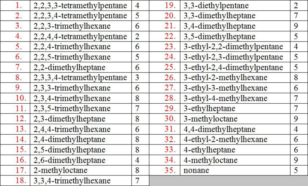 Đáp án: Đồng phân của C9H20 và số dẫn xuất monoclo tương ứng của từng đồng phân