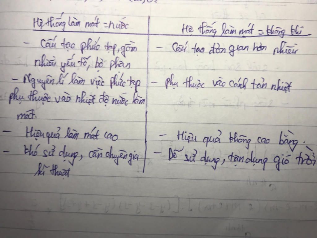 So sánh hệ thống lm mát bằng kk và hệ thống m mát bằng nước: