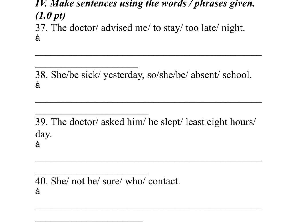 `39.` The doctor asked him if he slept at least eight hours a day.