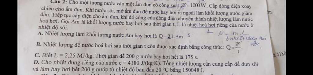 Nhiệt lượng làm nước bay hơi là `Q=Lm`.