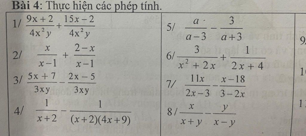 1, $\frac{9x+2+15x-2}{4x^2y}$