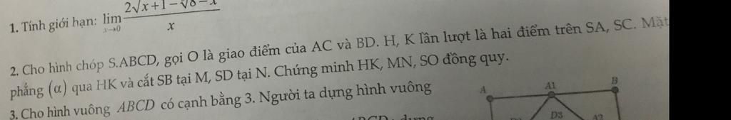 2. Cho hình chóp S.ABCD, gọi O là giao điểm của AC và BD. H, K lần lượt là hai điểm trên SA, SC. Mặt