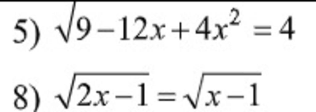 `8) \sqrt(2x-1) = \sqrt(x-1)`