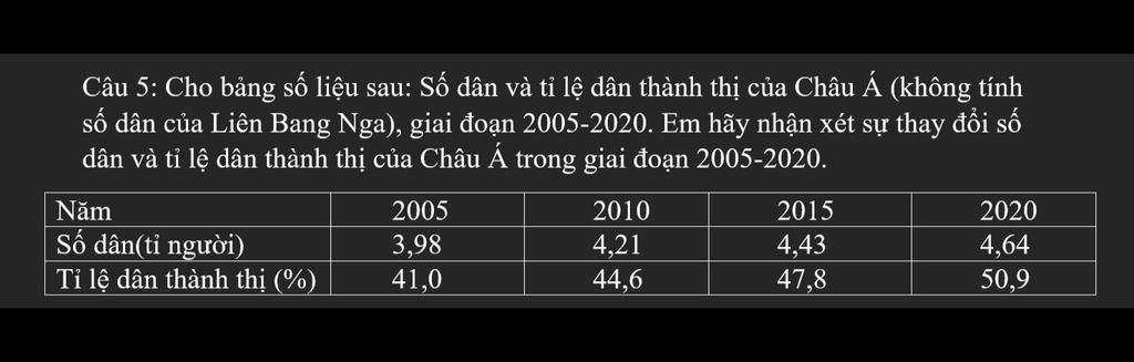 Số dân từ năm 2005- 2020 tăng lên 0.56 tỉ người( thực hiện phép trừ 4.54 tỉ người - 3.98 tỉ người )