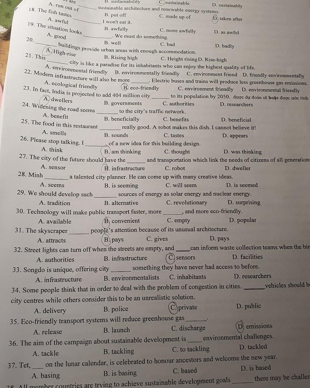 34. *ko rõ đề* C. private hoặc D. public tùy vào should be in/out of city centers