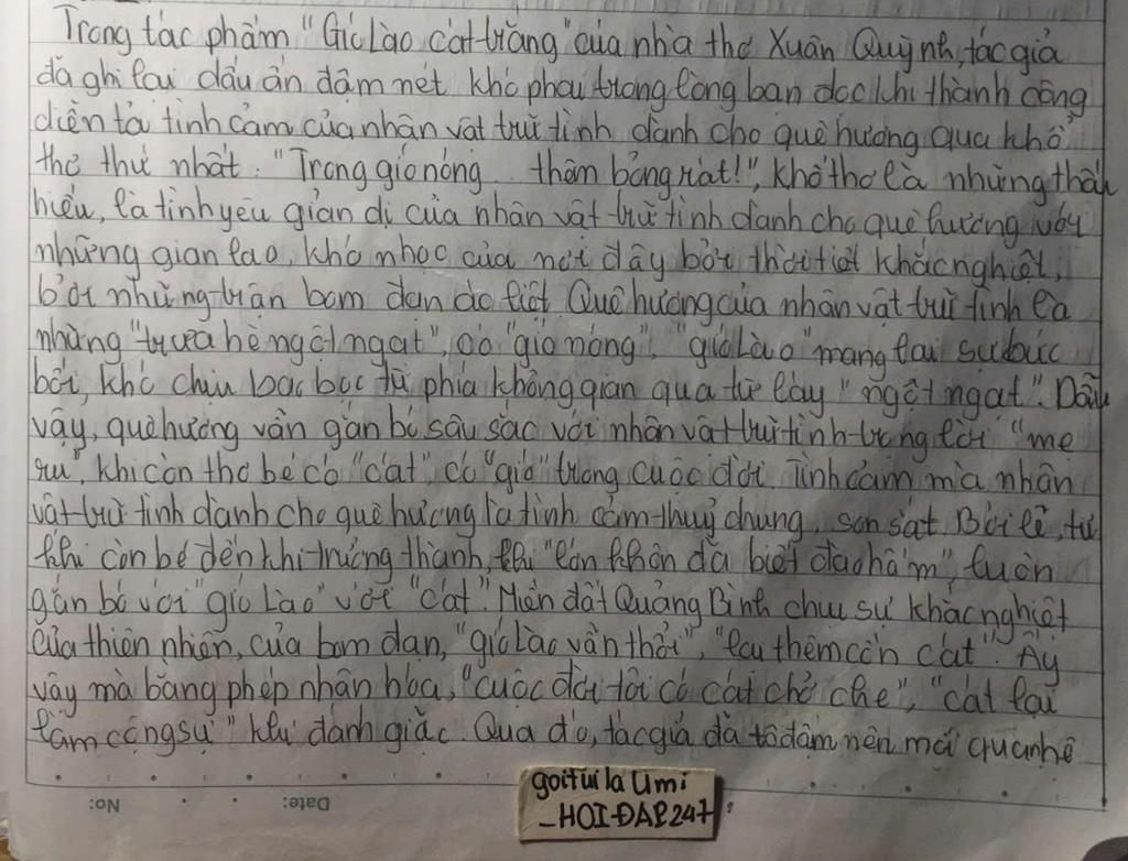 Quê hương luôn là một phần không thể tách rời trong mỗi con người, là nơi nuôi dưỡng tình cảm và kỷ niệm suốt đời. Trong bài thơ Gió lào cát trắng của Xuân Quỳnh, quê hương không chỉ hiện lên qua những cảnh vật quen thuộc mà còn là những dấu ấn trong cuộc đời mỗi người. Khổ thơ đầu tiên của bài thơ như một bức tranh vừa đầy khó khăn lại vừa chan chứa tình cảm. Mở đầu là hình ảnh "gió nóng những trưa hè ngột ngạt" và "hạt cát sạn hàm răng," những yếu tố thiên nhiên khắc nghiệt khiến người ta liên tưởng đến sự khắc nghiệt mà người dân miền Trung phải đối mặt hằng ngày. Tuy nhiên, trong cảnh tượng ấy, tình cảm của mẹ dành cho con lại trở thành một điểm tựa vững chắc. Mẹ "ru tôi" không chỉ là hình ảnh của một người mẹ yêu thương, mà còn là hình ảnh của sự chở che, bảo vệ trong cuộc sống đầy thử thách. Mặc dù cát, gió, bom đạn bao quanh, nhưng mẹ vẫn là nguồn an ủi, dịu dàng giữa bao nỗi khó khăn. Hình ảnh cát không chỉ là vật liệu xây dựng công sự, mà còn là chất liệu của tình yêu thương, của sự kiên cường và sức sống mãnh liệt. Xuân Quỳnh đã sử dụng những hình ảnh tưởng như khắc nghiệt để nhấn mạnh tình cảm vững bền của con người đối với quê hương, với mẹ. Quê hương, dù có bao nhiêu khó khăn, vẫn là nơi chứa đựng tình yêu, niềm tin và sức mạnh để con người vượt qua tất cả.