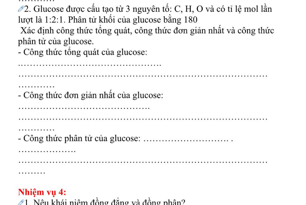 Xác định công thức tổng quát, công thức đơn giản nhất và công thức phân tử của glucose.