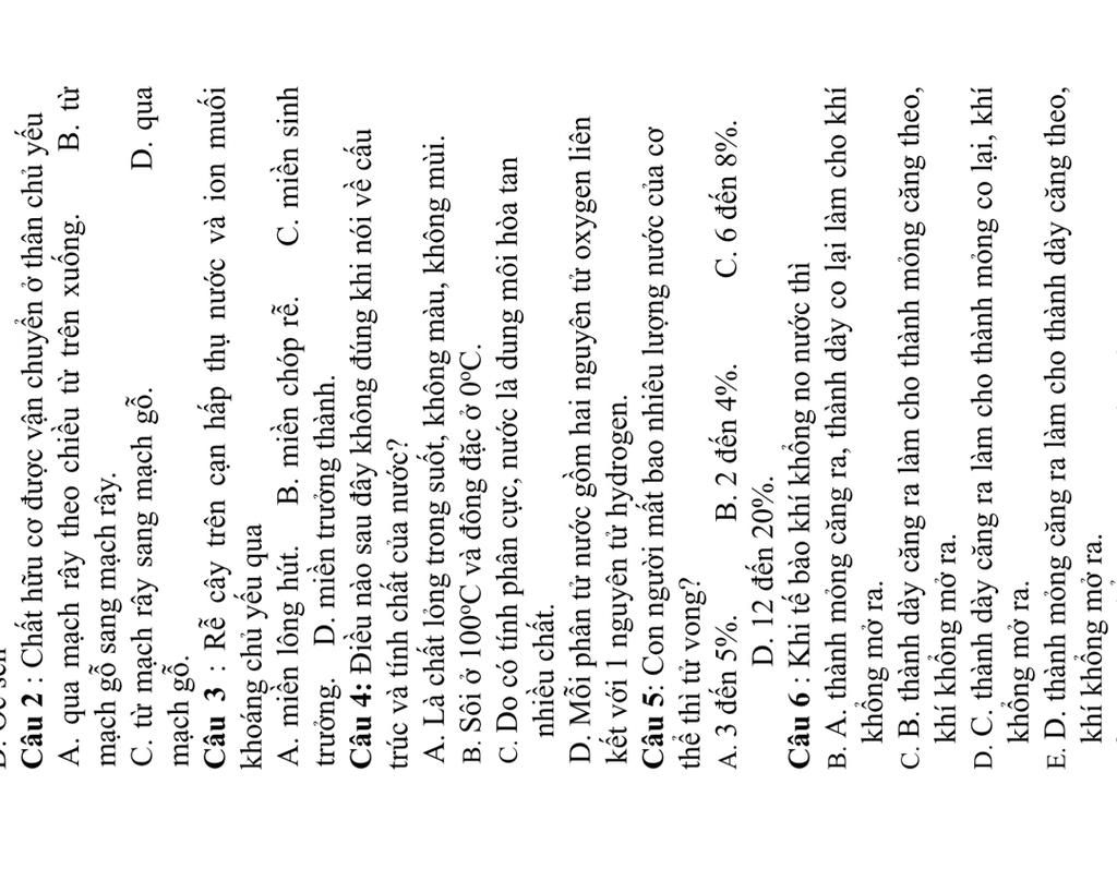 Câu 2 : Chất hữu cơ được vận chuyển ở thân chủ yếu