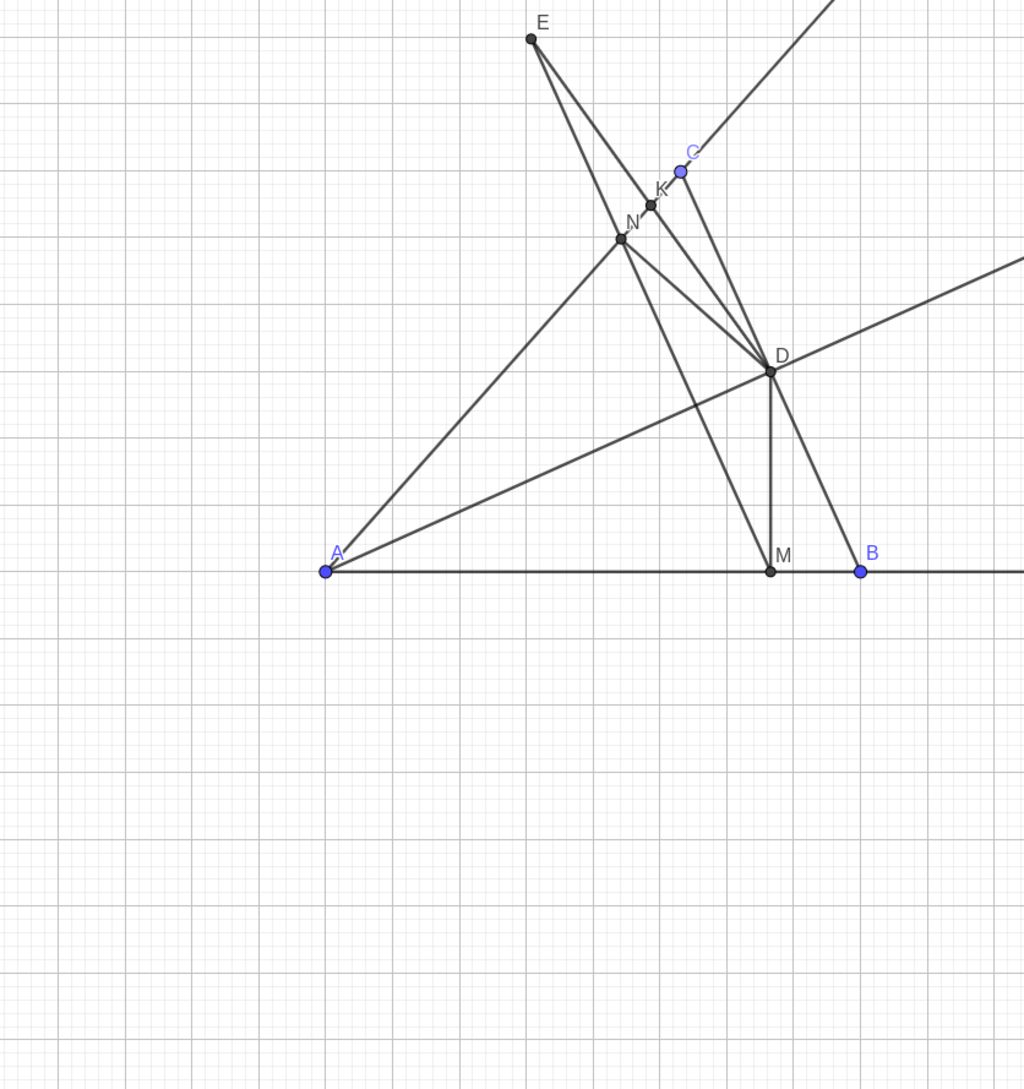 c) Vẽ DM 1 AB tại M. Trên cạnh AC lấy N sao cho AN = AM. Chứng minh AADM = AADN và DN 1 AC.