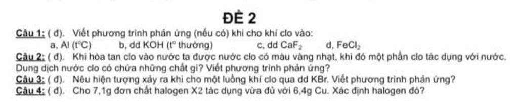 PTHH : Cl2 + H2O ⇄ HCl + HClO