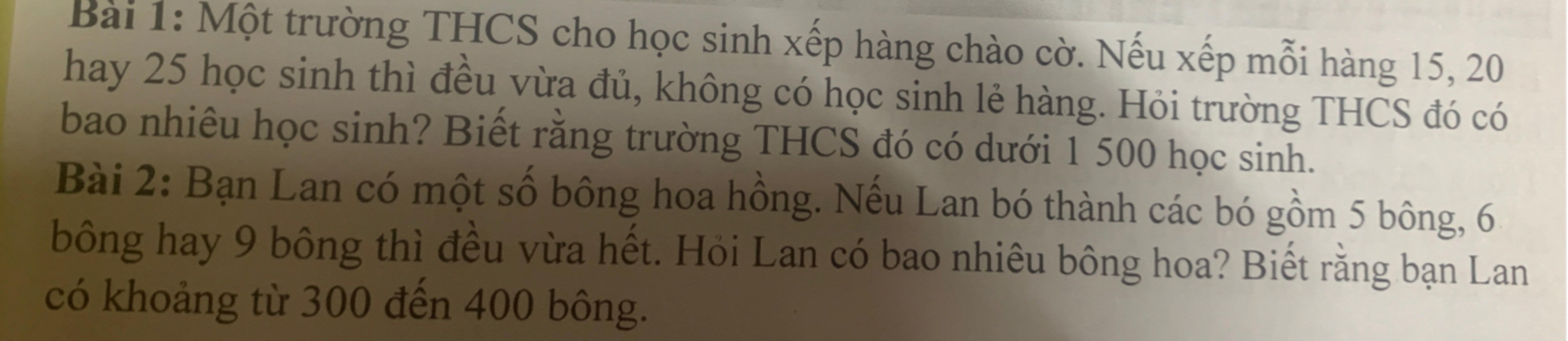 Gọi x(hs) là số học sinh cần tìm (ĐK: x ∈ N* và x < 1500