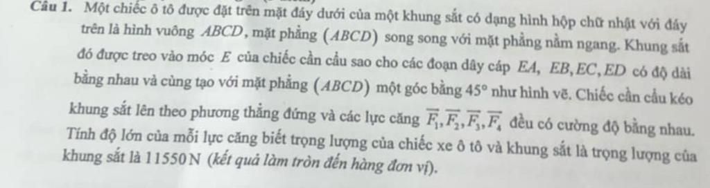 Câu 1. Một chiếc ô tô được đặt trên mặt đáy dưới của một khung sắt có dạng hình hộp chữ nhật với đáy