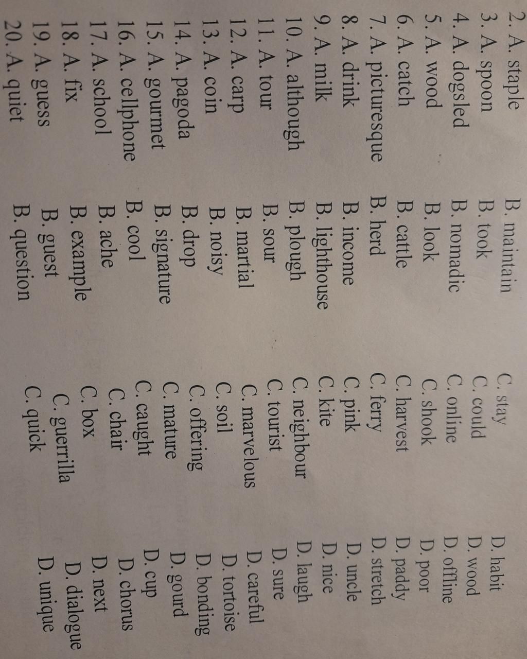 câu 19 nếu gạch g là k đáp án em nhé.. Nếu gạch chỗ khác thì e nói nhé