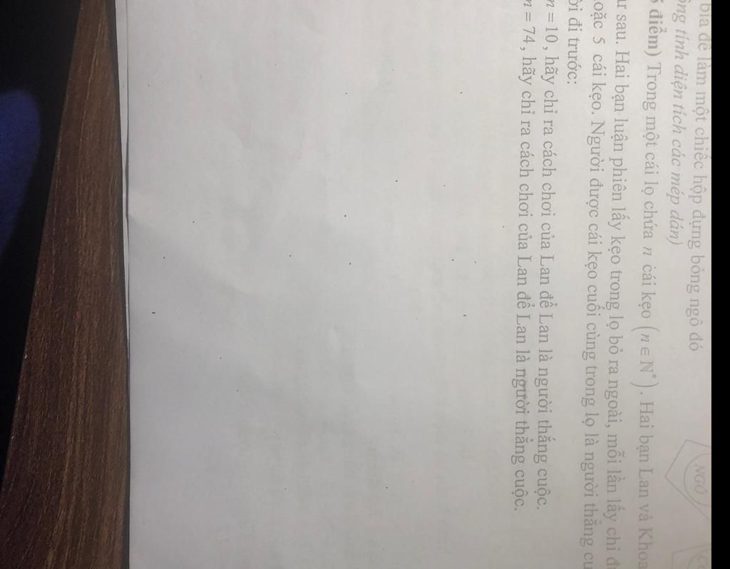 5 điểm) Trong một cái lọ chứa n cái kẹo (neN"). Hai bạn Lan và Kho